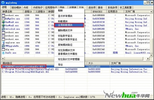 5)右键点击explorer.exe下加载的iconhandle.dll,将其全局卸载。(如图6)