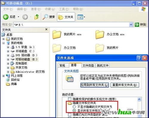 瑞星安全专家唐威表示,从病毒文件夹删除后又立即被创建的现象不难看出,系统中正加载着病毒文件,该病毒文件不断地向U盘写入文件并命名为“文件夹名.exe”的病毒。当你通过“文件夹选项”显示隐藏文件时,原有的硬盘文件可以看到(如图1),但却无法右键修改文件夹的属性。