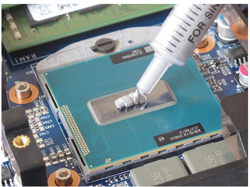 第四步:涂抹硅脂并安装散热器。在涂抹硅脂时,在处理器上挤出豌豆大小的硅脂,并用塑料卡片涂抹均匀,然后再安装散热器即可。需要提醒大家注意,由于传统处理器和显卡的散热器都是设计在一起的,拆掉散热器会同时破坏处理器和显卡散热器的硅脂涂层,因此在为处理器涂抹新硅脂时,也需要清除掉显卡芯片及其散热器表面的残余硅脂并涂抹新硅脂。