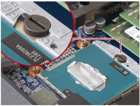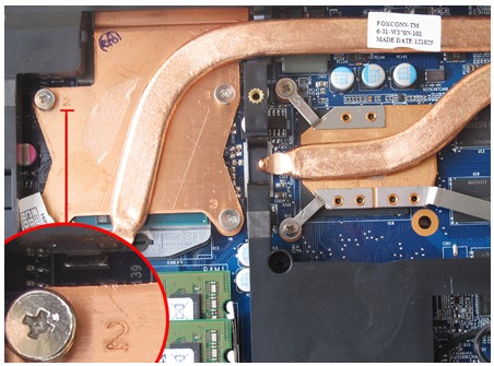 第一步:拆掉散热器。散热器的拆解并没有什么难度,可能大家认为不就是拆掉固定散热器的几颗螺丝吗?答案没错,但是我们在拆卸时需要遵循一定的螺丝拆解顺序。如果大家比较细心,会看到部分机型散热器的螺丝固定孔附近会标示有1、2、3等数字,我们在拆解时需要遵循3、2、1的顺序拆解,而安装时则按照1、2、3的顺序安装,确保不会因为散热器受力不均而压坏处理器。