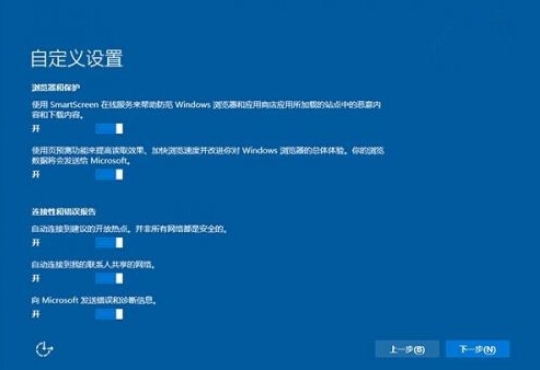 在安装前的快速设置当中可以自定义设备,而非默认设置,这样你就可以选择阻止系统访问你的位置信息、浏览器数据以及自动连接至建议热点。